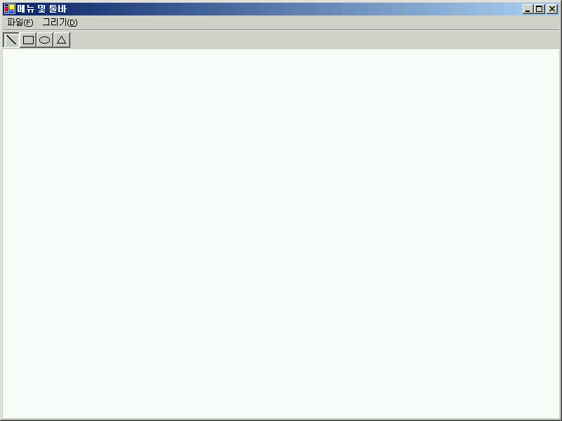 ±×¸®±â ¸Þ´ºÀÇ °¢ Ç׸ñÀ» ¼±ÅÃÇßÀ» ¶§ ÇØ´ç Á¾·ù°¡ ¼±Åõǵµ·Ï ¼³Á¤ÇÑ´Ù. ¿¹¸¦ µé¾î »ç°¢Çü(&R)À» ¼±ÅÃÇßÀ» ¶§ È£ÃâµÇ´Â Method¿¡ this.drawKind = DrawKind.Rectangle;À» ÀÔ·ÂÇÑ´Ù.
